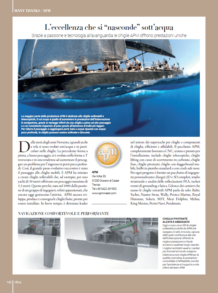 Grazie anche a tutti gli amici, architetti navali, cantieri e clienti per il continuo riconoscimento della qualità del prodotto APM dopo così tanti anni.