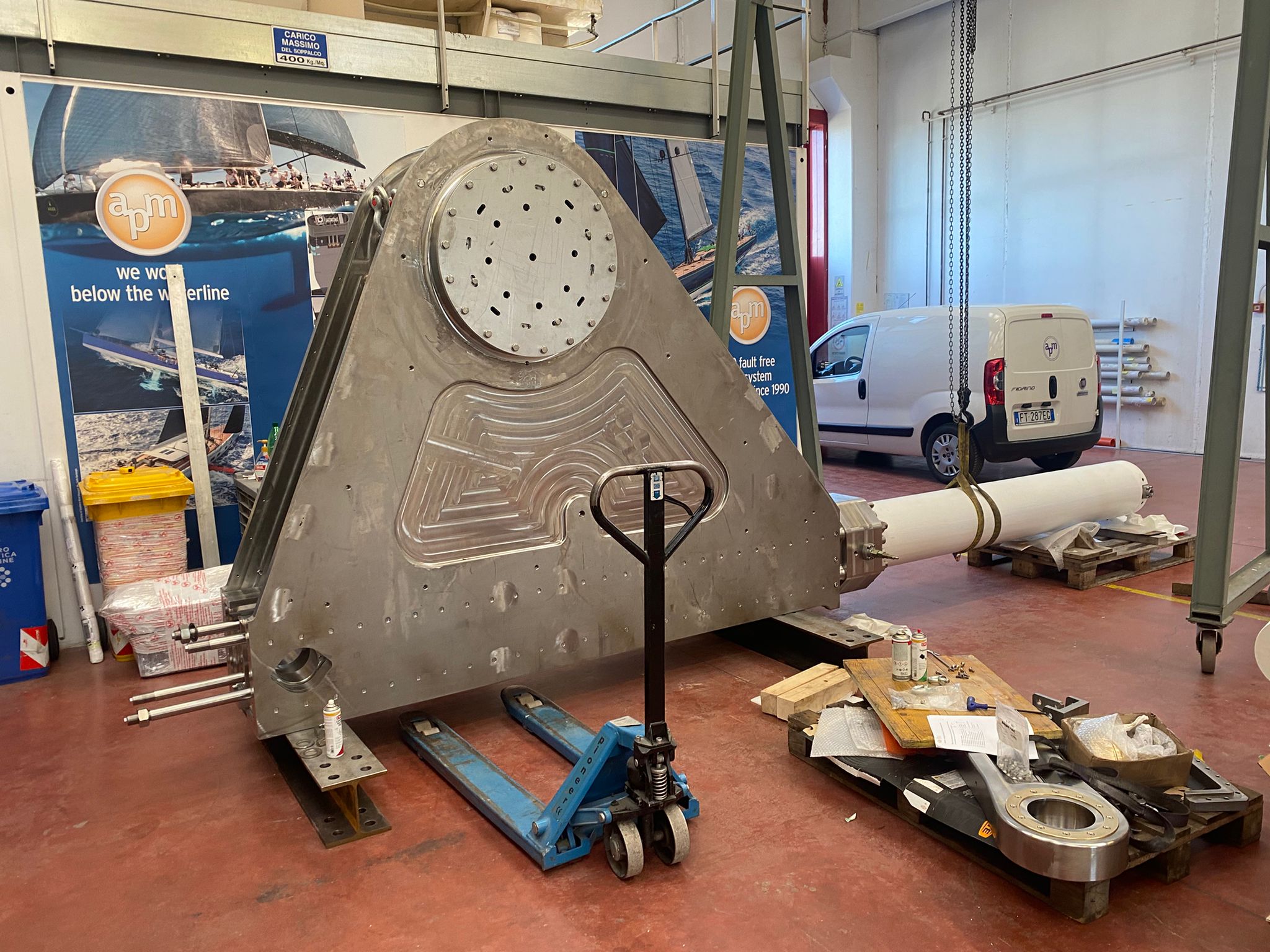 APM team worked together with the design team of JuanK and Rob Doyle to finalize and engineer the concept of this pivoting keel for the modern type of sailing superyacht, which is now finally ready to be installed. The moving mechanism and the structural part of it. The keel blade will be the next big milestone…
